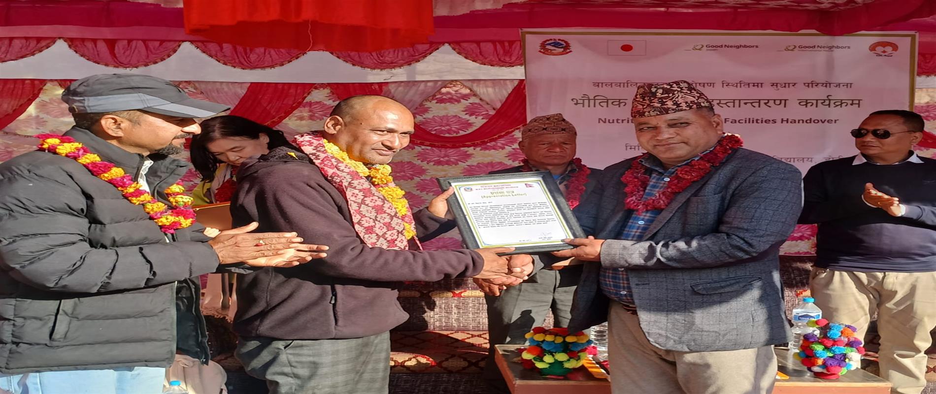 During the handover program, students of the school presented cultural performances. Appreciation certificates were also presented to EDC from Dipayal Silgadhi Municipality and the school. Additionally, letters of recognition were handed over on behalf of the school and EDC to Good Neighbors International Japan and Good Neighbors International Nepal.